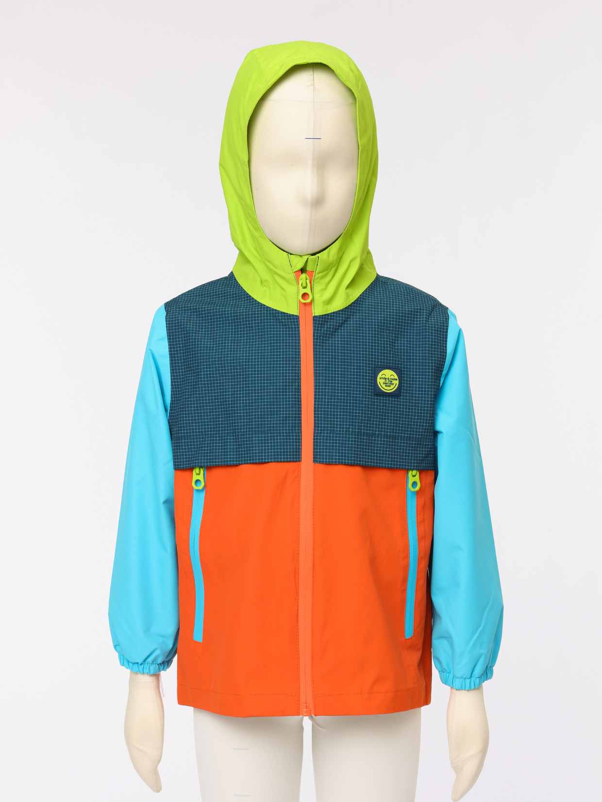 1. Bold Multi-Color Block Design: The mix of lime green, navy check, orange, and light blue adds lively, kid-approved style—making this kids winter jacket a standout piece boys will be excited to wear.