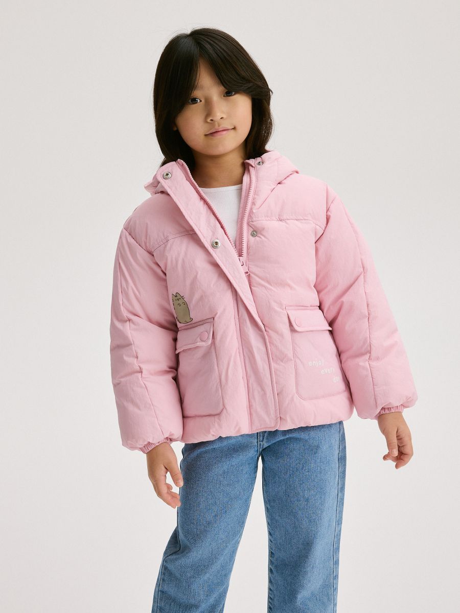 Teen girl winter - heavy jacket | Cute Cat-Print Kids Hooded Girls Winter Jacket