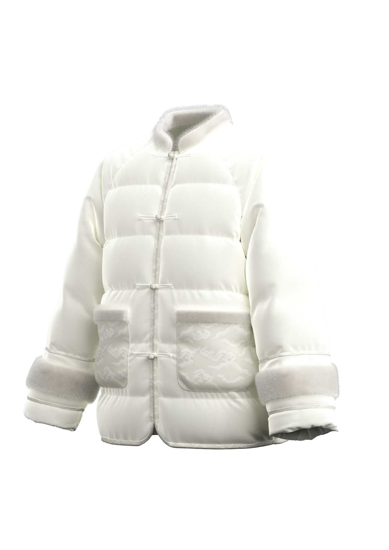 3. Cloud-patterned pockets + plush cuffs: Stylish decorative details paired with practical storage and draft-blocking comfort