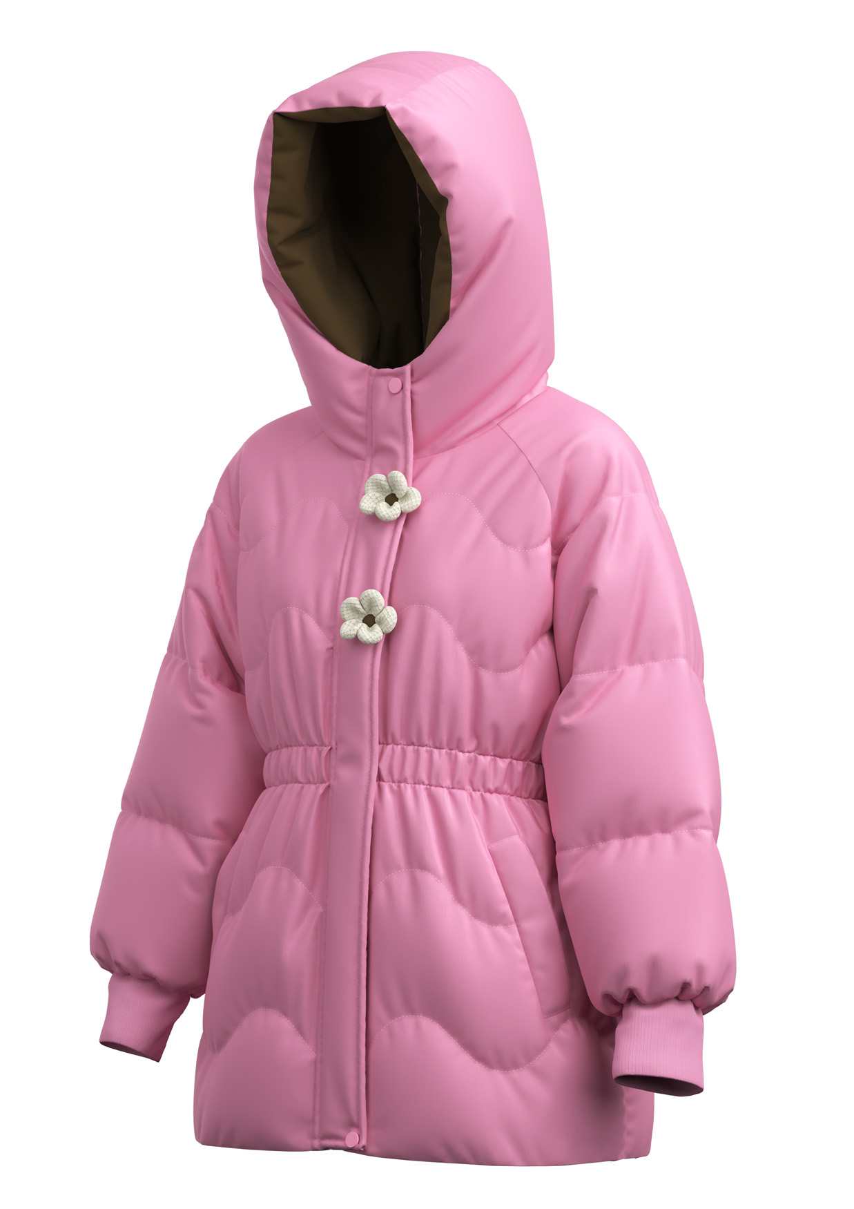 1. Floral-Shaped Toggle Buttons: Adorable flower-themed closures add a playful, girly touch to this girls winter jacket, while ensuring a secure, wind-resistant fit.