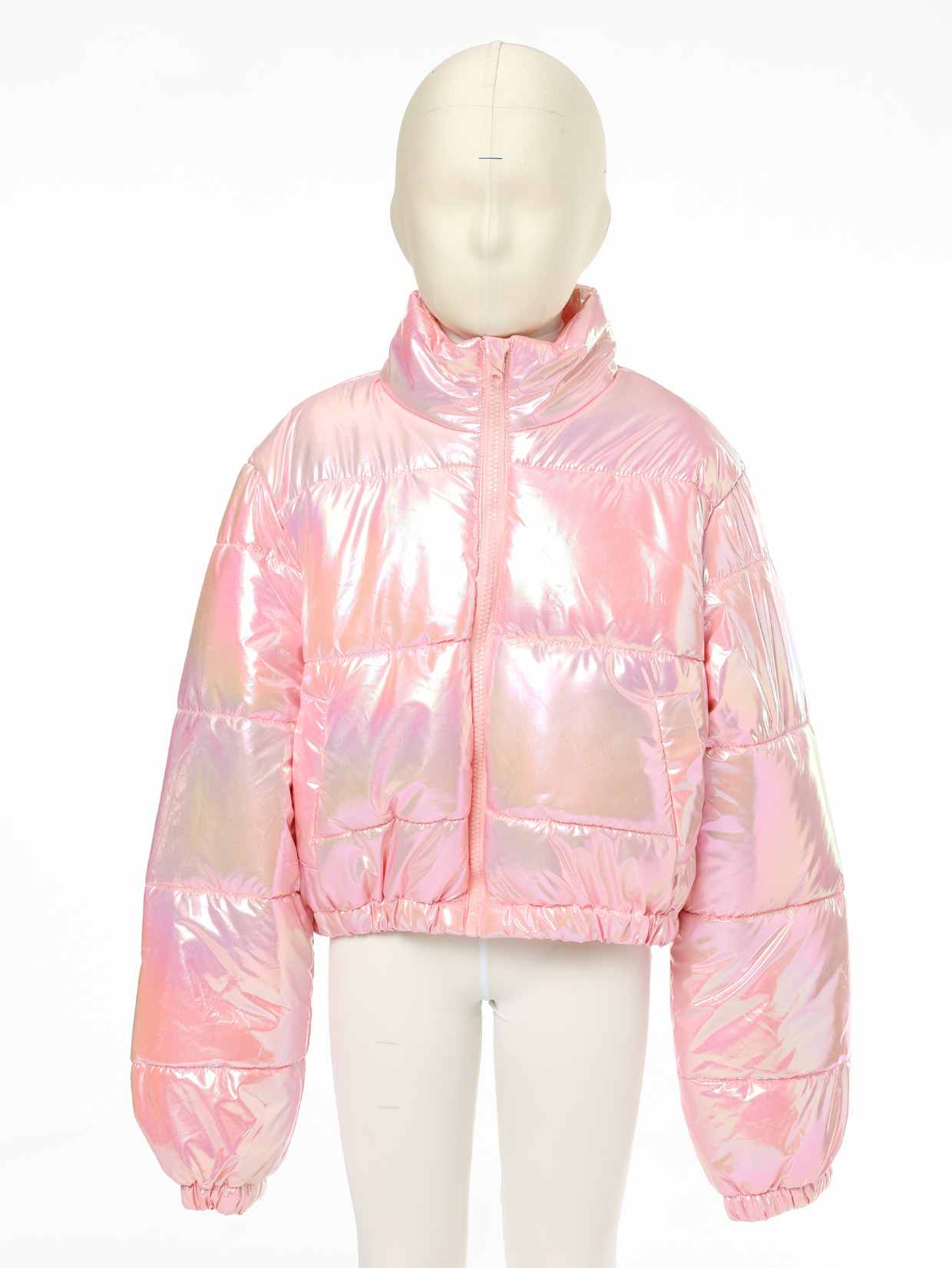 1. Iridescent Finish + Back Heart Quilting (quilted coat design): The pink holographic texture paired with 3D heart quilting turns this girls winter jacket into a style standout—girls will love its trendy, playful look.