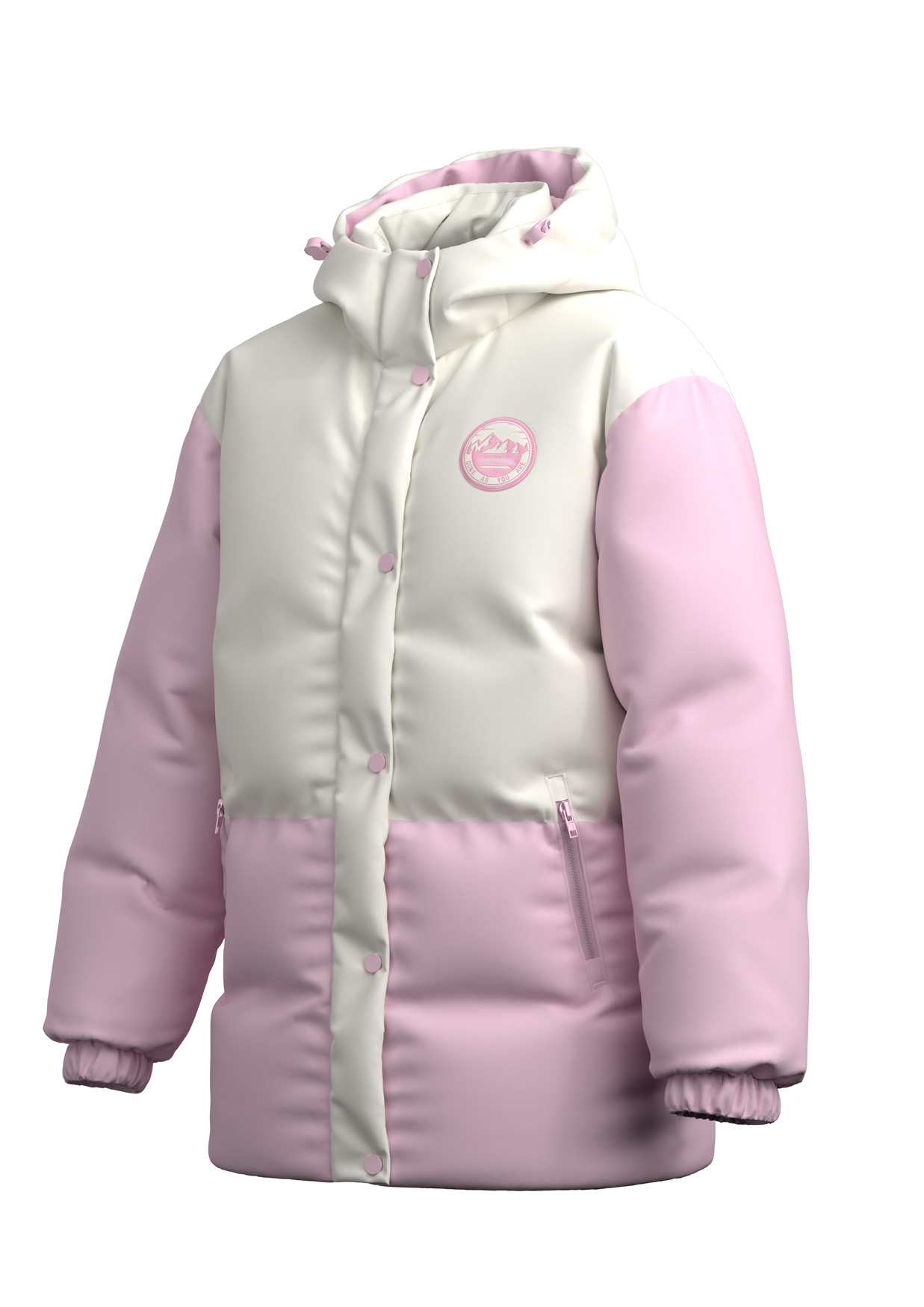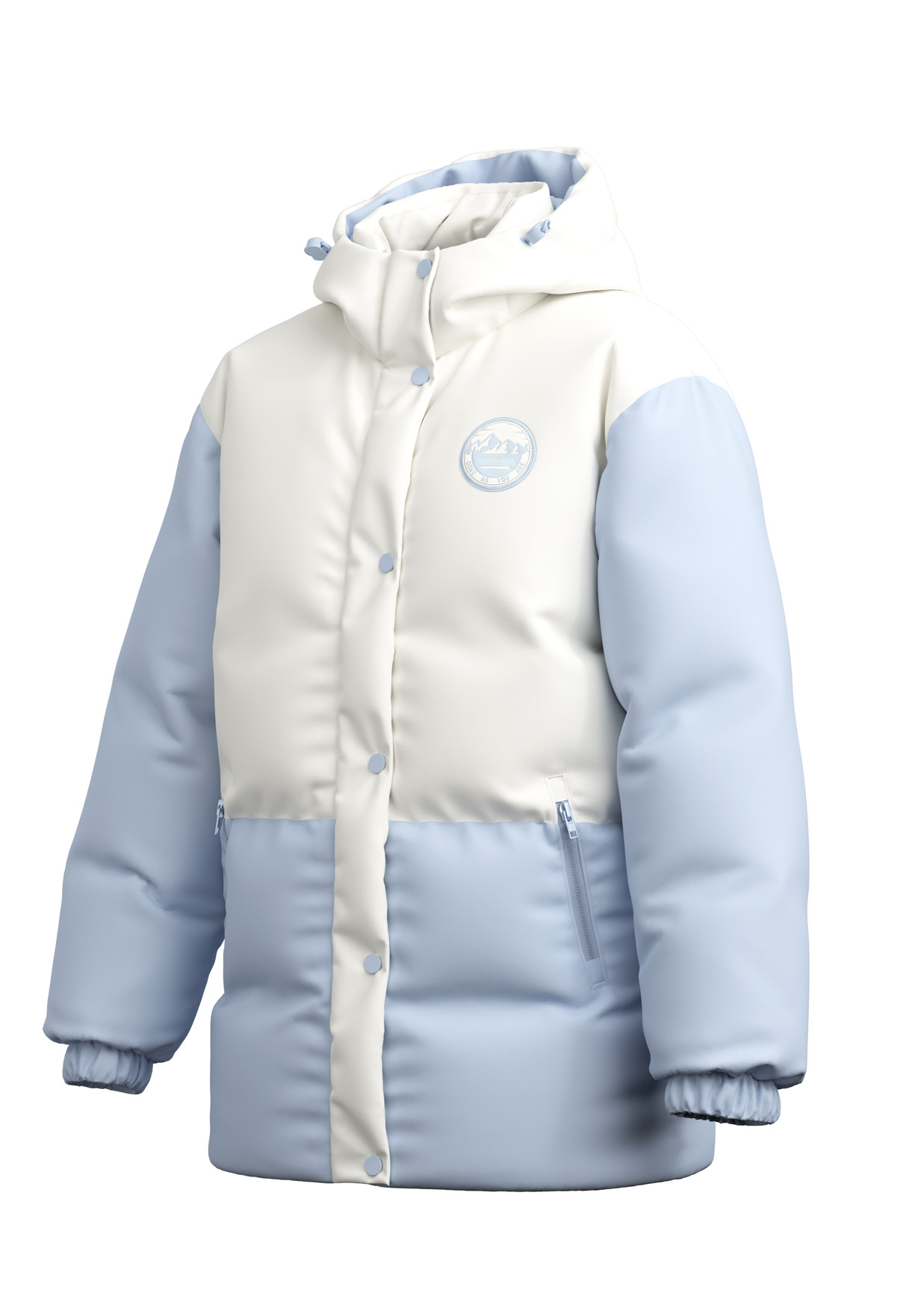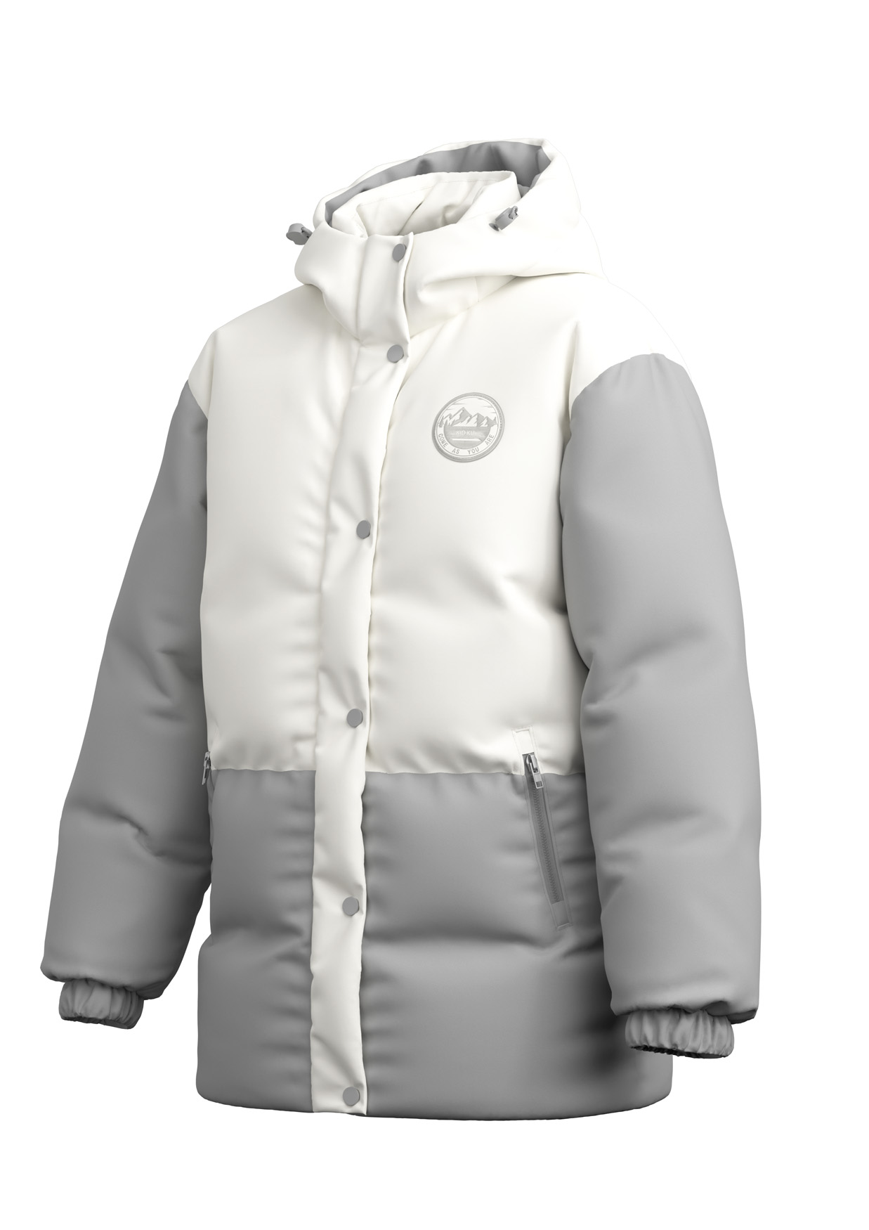 3. Dual Closure (Zip + Snap Placket): A smooth full-zip with a soft chin guard avoids chafing, while decorative snap plackets add a cute finish and extra wind protection for this girls winter jacket.