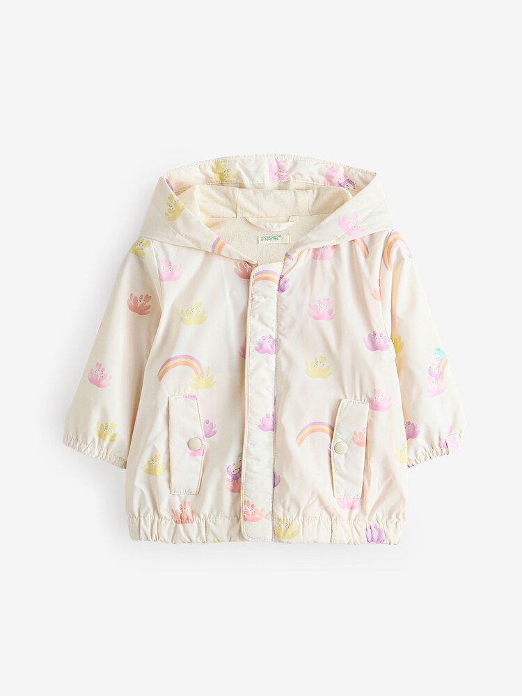 1. Whimsical Unicorn & Rainbow Print: The soft cream base paired with colorful unicorn, rainbow, and crown graphics turns this jacket into a kid-favorite piece she’ll be excited to wear every day.