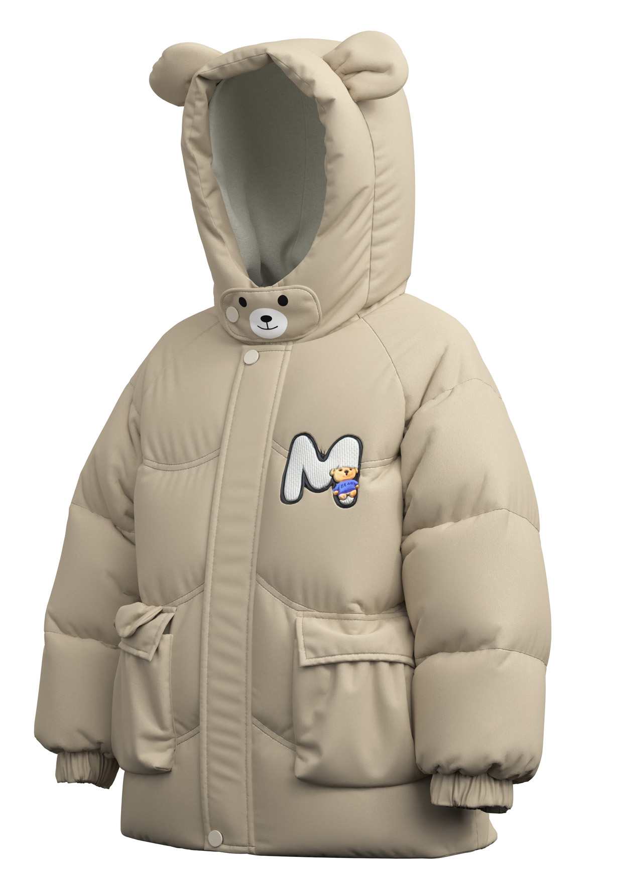 1. Bear-Ear Attached Hood (kids hooded jacket): The built-in hood with 3D bear ears delivers the wrapped coverage of a kids hooded jacket, adding playful, kid-approved charm to this Toddler girl jacket.